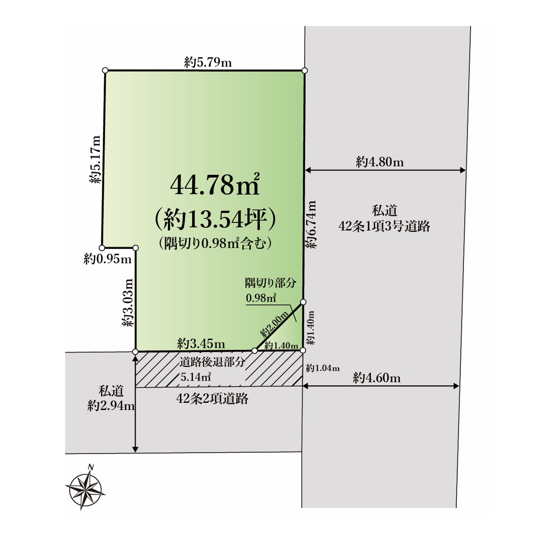 東側約4.8m私道 南側約2.9m私道